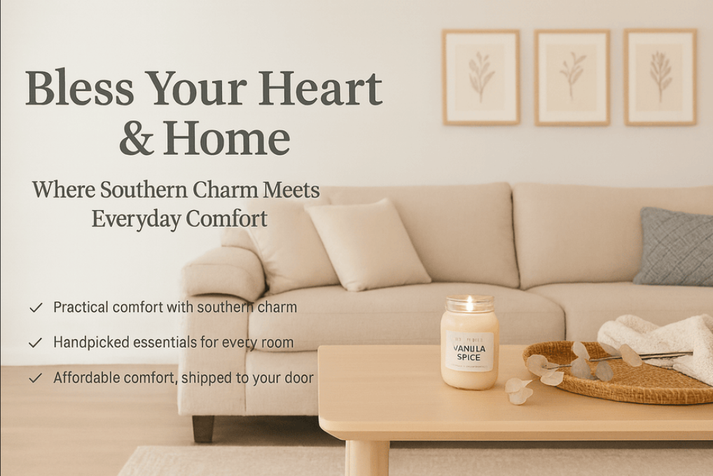 Discover the beauty of everyday comfort. Each piece in our Bless Your Heart & Home collection is thoughtfully chosen to blend effortless style with a sense of calm. From soft textures to timeless details, you’ll find everything you need to make your home feel welcoming, lived-in, and truly yours.